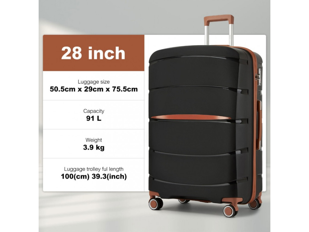 Vyrobený z kvalitného polypropylénu s tichými dvojitými kolieskami, hliníkovou výsuvnou rukoväťou alebo TSA číselným zámkom. Medzi hlavné výhody polypropylénu patrí výborná použiteľnosť pri cestovaní lietadlom. Polypropylén je odolný proti prasknutiu a pri nárazoch sa vráti do pôvodného tvaru. Naproti tomu kufre vyrobené z ABS sú náchylné na praskanie pri mechanickom pôsobení síl.
