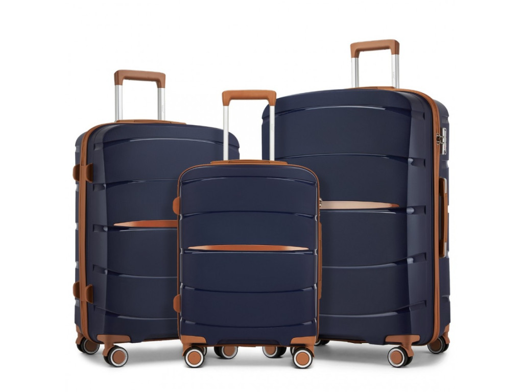 Kono 2591 Sada 3 kufrov 55cm 66.5cm 75.5cm spinner Modrá Polypropylen