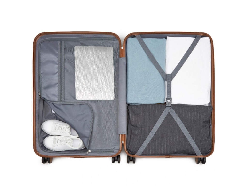 - Pružné krížové popruhy pre upevnenie obsahu na jednej strane a zipsom uzatváraná priehradka na druhej strane kufra