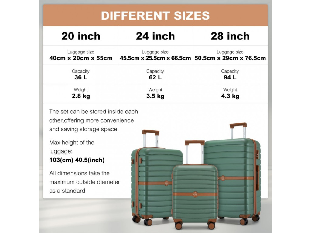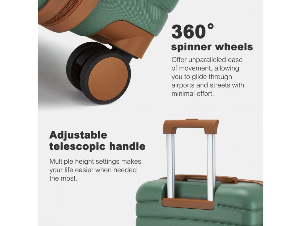 Kono 2592 Sada 3 kufrov Spinner 55/65/75cm Zelená ABS/Polykarbonát