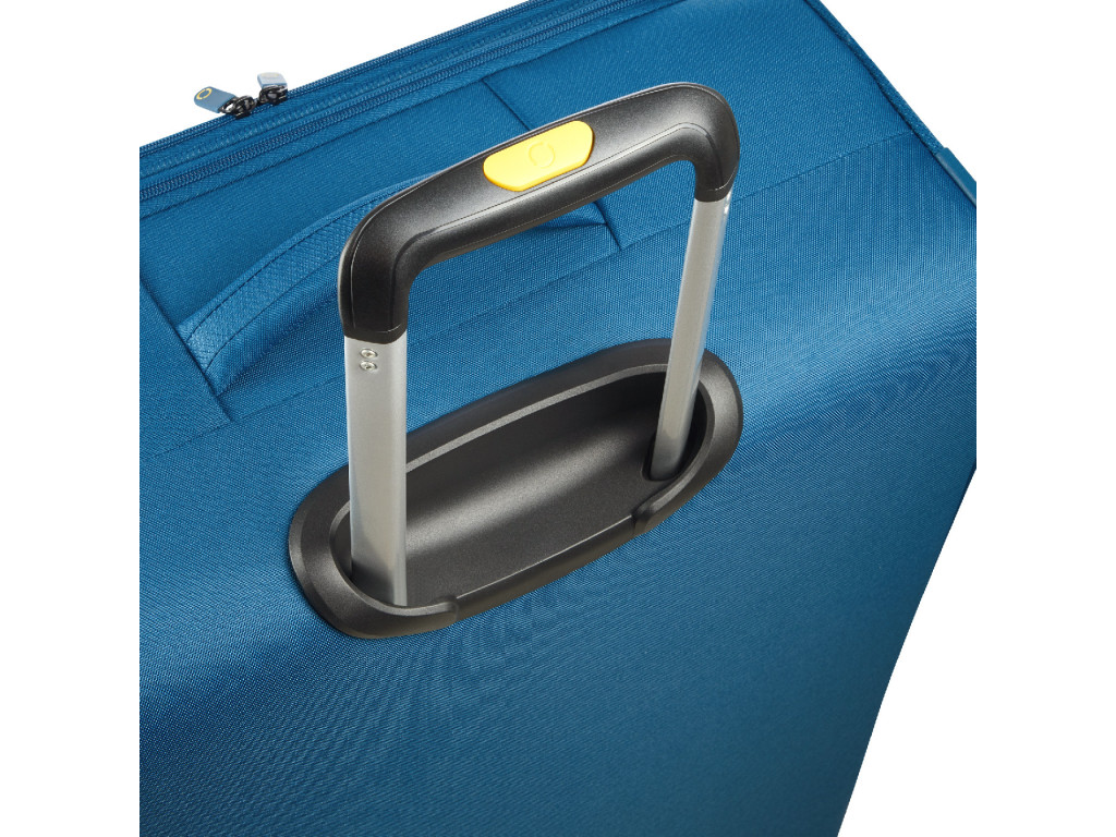 Výsuvné madlo s nastavením výšky a štyri dvojité kolieska otočné o 360° vám umožnia maximálne pohodlie při cestovaní.