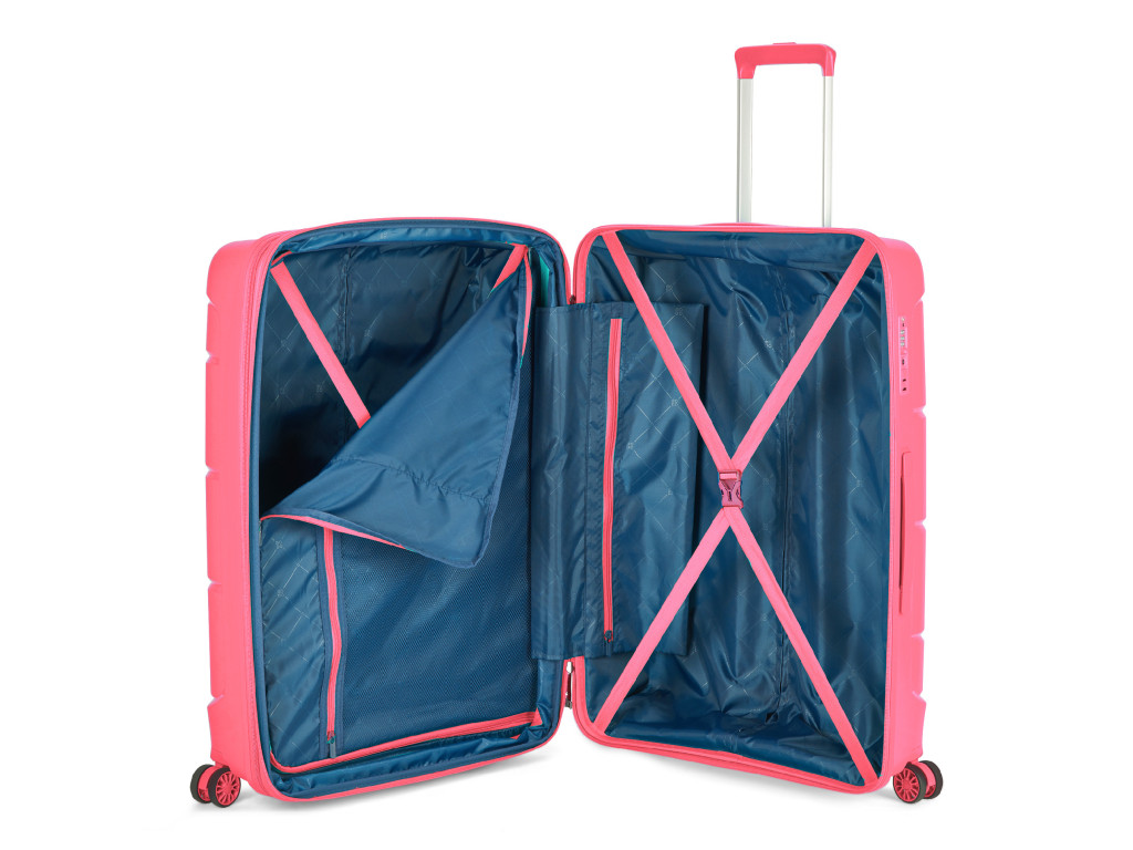 Kufre sú vyrobené zo 100% polypropylénu, čo zaručuje vysokú odolnosť proti nárazom a poškriabaniu. Aj keď je tento materiál extrémne pevný, je tiež veľmi ľahký. Vo vnútri kufra Roncato Starlight 3.0 nájdete premyslene rozvrhnuté priestory, disponujúce veľkou priehradkou na zips na jednej strane a popruhami na oboch stranách. Tie vám umožnia oddeliť a upevniť rôzne typy oblečenia či osobné predmety.