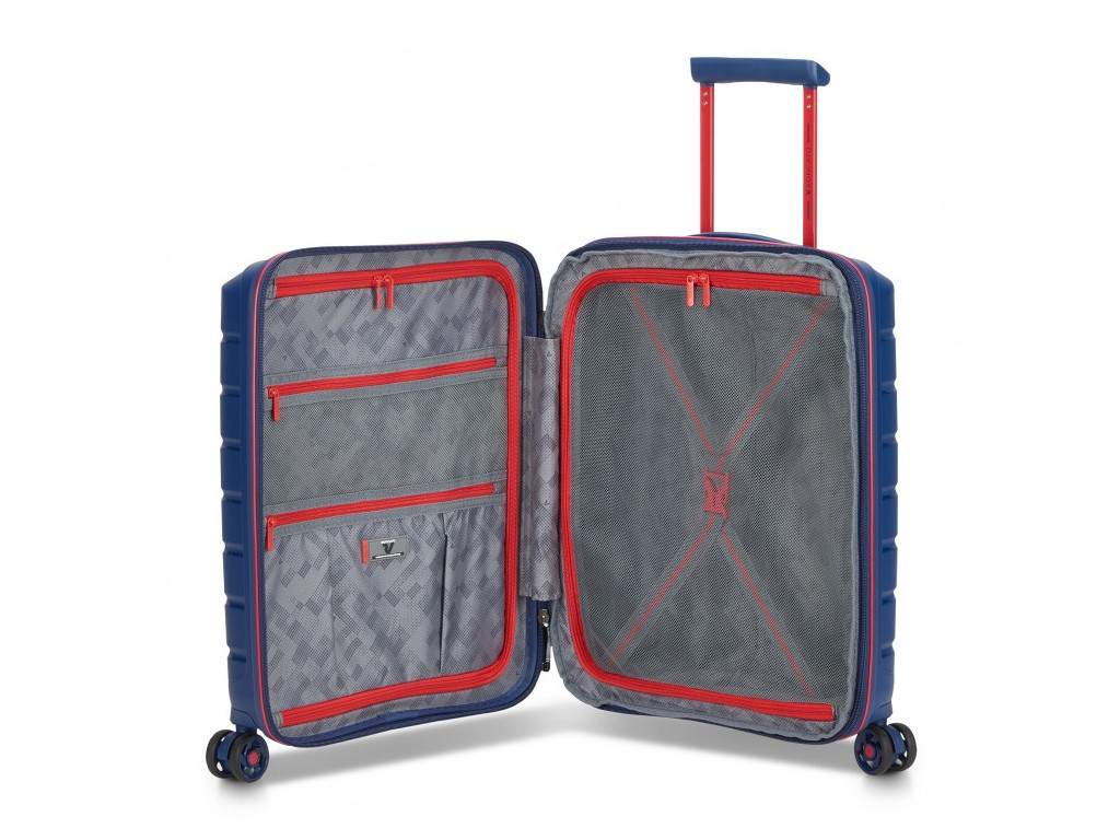 Kufre sú vyrobené zo 100% polypropylénu, čo zaručuje vysokú odolnosť proti nárazom a poškriabaniu. Aj keď je tento materiál extrémne pevný, je tiež veľmi ľahký. Vo vnútri kufra Roncato B-Flying nájdete premyslene rozvrhnuté priestory, disponujúce dvoma veľkými priehradkami na zips,ktoré vám umožnia oddeliť rôzne typy oblečenia či osobné predmety.