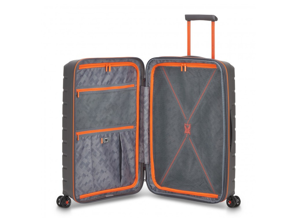 Kufre sú vyrobené zo 100% polypropylénu, čo zaručuje vysokú odolnosť proti nárazom a poškriabaniu. Aj keď je tento materiál extrémne pevný, je tiež veľmi ľahký. Vo vnútri kufra Roncato B-Flying nájdete premyslene rozvrhnuté priestory, disponujúce dvoma veľkými priehradkami na zips,ktoré vám umožnia oddeliť rôzne typy oblečenia či osobné predmety.