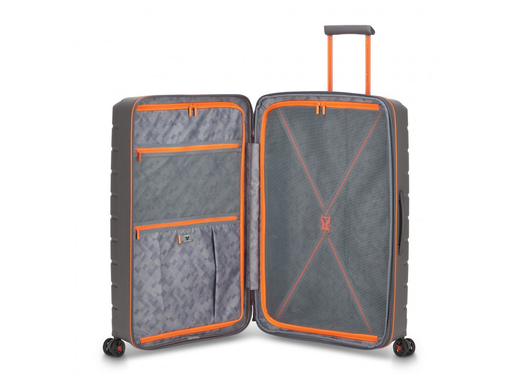 Kufre sú vyrobené zo 100% polypropylénu, čo zaručuje vysokú odolnosť proti nárazom a poškriabaniu. Aj keď je tento materiál extrémne pevný, je tiež veľmi ľahký. Vo vnútri kufra Roncato B-Flying nájdete premyslene rozvrhnuté priestory, disponujúce dvoma veľkými priehradkami na zips,ktoré vám umožnia oddeliť rôzne typy oblečenia či osobné predmety.