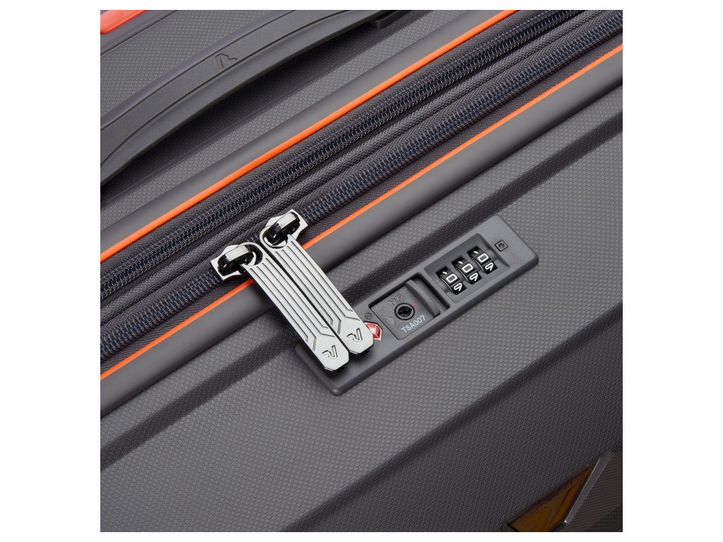 Zámok TSA pre zvýšenú bezpečnosť. TSA zámok umožňuje pri kontrolách na letisku bezpečnostným orgánom bez poškodenia otvoriť vaše zavazadlo.