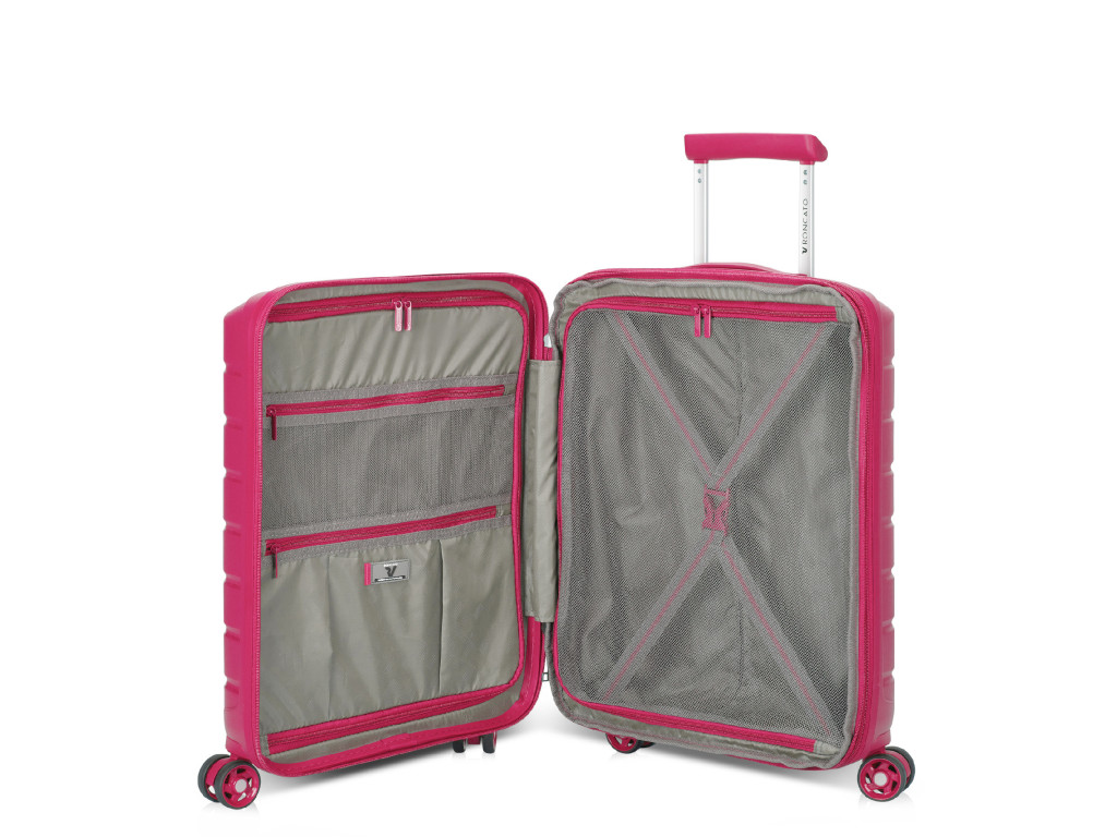 Vo vnútri kufra Roncato B-Flying nájdete premyslene rozložené priestory, disponujúce dvoma veľkými priehradkami na zips, ktoré vám umožnia oddeliť rôzne typy oblečenia či osobné predmety.