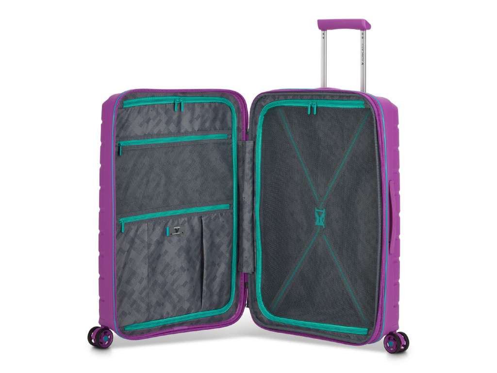 Kufre sú vyrobené zo 100% polypropylénu, čo zaručuje vysokú odolnosť proti nárazom a poškriabaniu. Aj keď je tento materiál extrémne pevný, je tiež veľmi ľahký. Vo vnútri kufra Roncato B-Flying nájdete premyslene rozvrhnuté priestory, disponujúce dvoma veľkými priehradkami na zips,ktoré vám umožnia oddeliť rôzne typy oblečenia či osobné predmety.