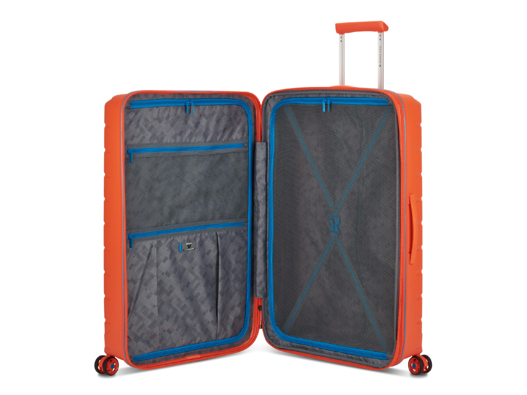 Kufre sú vyrobené zo 100% polypropylénu, čo zaručuje vysokú odolnosť proti nárazom a poškriabaniu. Aj keď je tento materiál extrémne pevný, je tiež veľmi ľahký. Vo vnútri kufra Roncato B-Flying nájdete premyslene rozvrhnuté priestory, disponujúce dvoma veľkými priehradkami na zips,ktoré vám umožnia oddeliť rôzne typy oblečenia či osobné predmety.