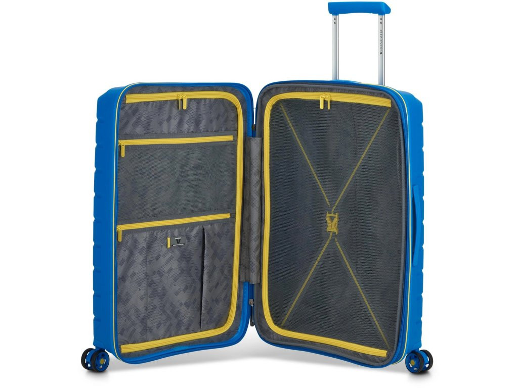 Vo vnútri kufra Roncato B-Flying nájdete premyslene rozložené priestory, disponujúce dvoma veľkými priehradkami na zips, ktoré vám umožnia oddeliť rôzne typy oblečenia či osobné predmety.