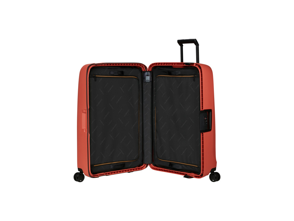 Essens, navržený a vyrobený v Evropě, je ve své vlastní kategorii jedním z nejlehčích polypropylenových kufrů s 3-bodovým zamykáním. Této výjimečné hmotnosti je dosaženo samozpevňujícím designem, high-tech výrobní metodou a revoluční směsí polypropylenu. Jedinečná konstrukce a těsnění poskytuje nejen neuvěřitelnou pevnost, ale také omezuje pronikání vody. I když patří k nejlehčím, kufry Essens procházejí přísnými testy pevnosti, kterými je Samsonite známý, a nabízejí extrémně vysokou kapacitu balení.