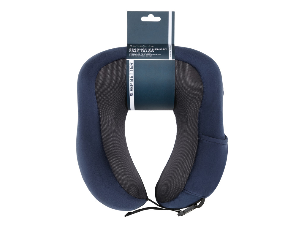 Ergonomický cestovný vankúš Samsonite vyrobený z prémiovej pamäťovej peny, ktorý sa vytvaruje telu a pomáha odbúrať stuhnutosť tela.