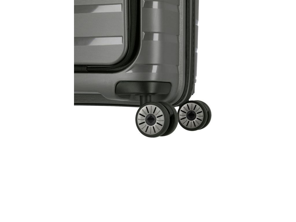 Nech už je cesta akokoľvek náročná, štyri veľké kolieska sa postarajú o to, aby bol kufor stabilný, ľahko sa ovládal a bol veľmi tichý. Kufor má špeciálnu vrstvu, ktorá ho chráni pred poškriabaním, a vyzerá ako luxusná batožina.