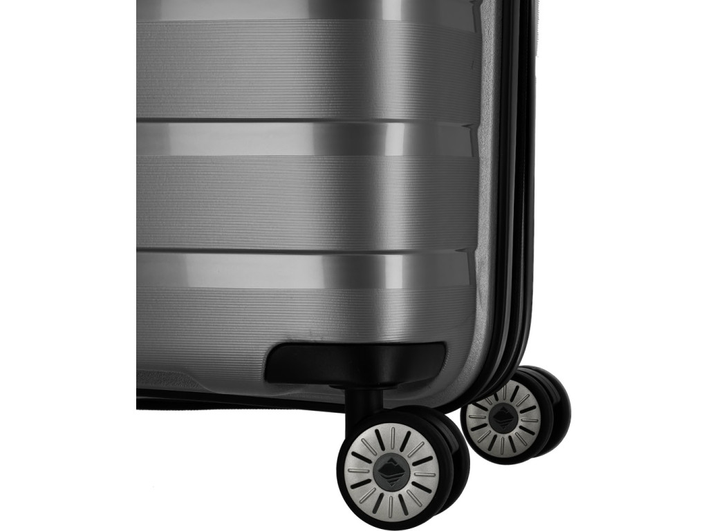 Nech už je cesta akokoľvek náročná, štyri veľké kolieska sa postarajú o to, aby bol kufor stabilný, ľahko sa ovládal a bol veľmi tichý. Kufor má špeciálnu vrstvu, ktorá ho chráni pred poškriabaním, a vyzerá ako luxusná batožina.