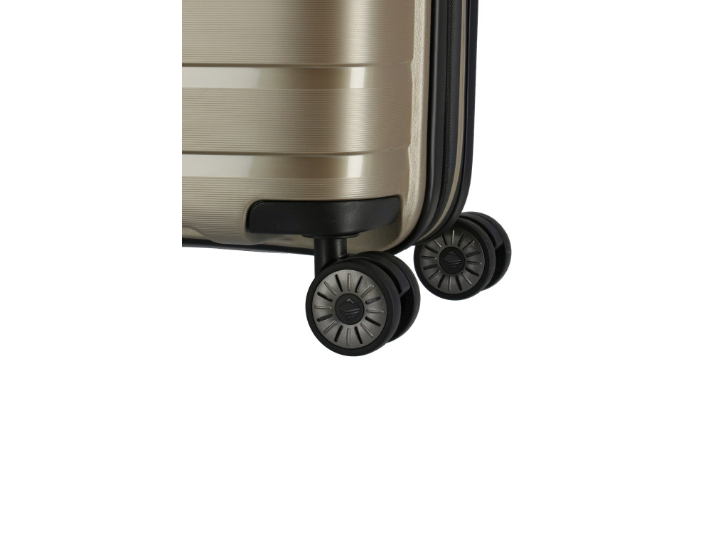 Nech už je cesta akokoľvek náročná, štyri veľké kolieska sa postarajú o to, aby bol kufor stabilný, ľahko sa ovládal a bol veľmi tichý. Kufor má špeciálnu vrstvu, ktorá ho chráni pred poškriabaním, a vyzerá ako luxusná batožina.