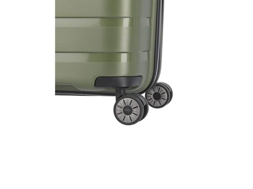 Nech už je cesta akokoľvek náročná, štyri veľké kolieska sa postarajú o to, aby bol kufor stabilný, ľahko sa ovládal a bol veľmi tichý. Kufor má špeciálnu vrstvu, ktorá ho chráni pred poškriabaním, a vyzerá ako luxusná batožina.