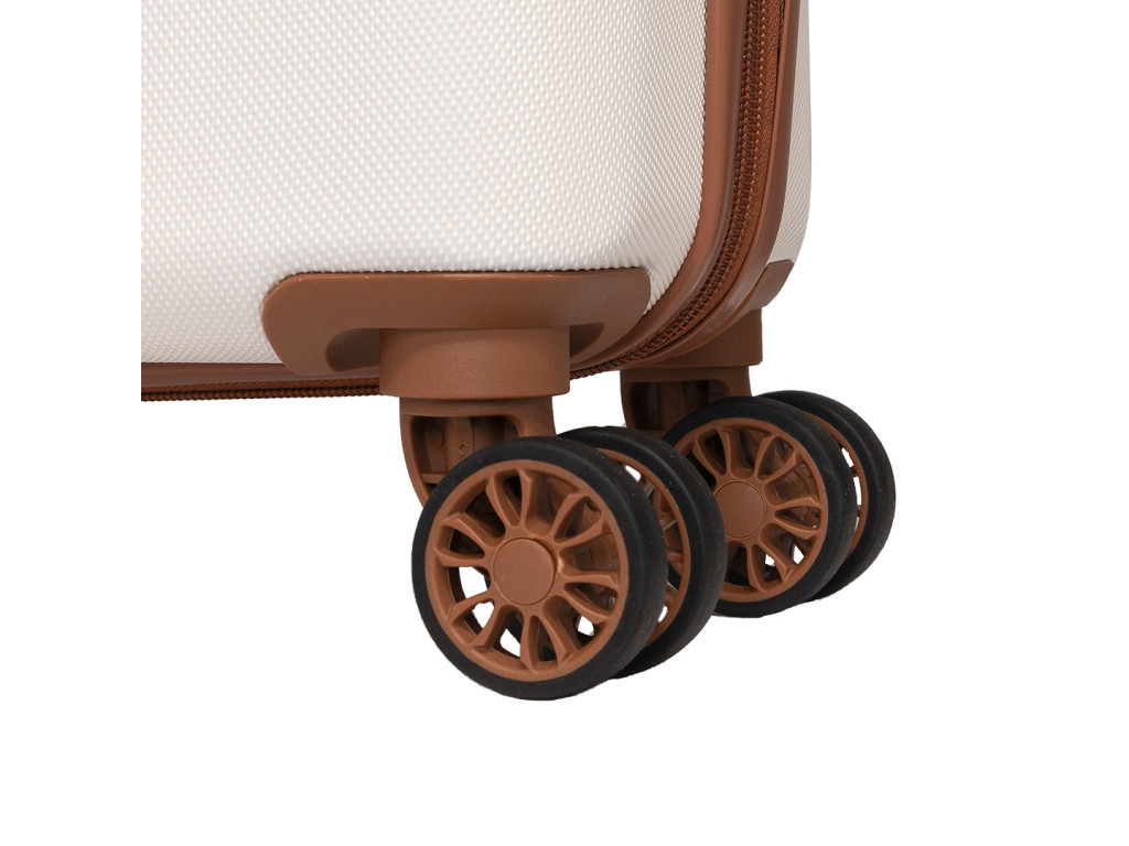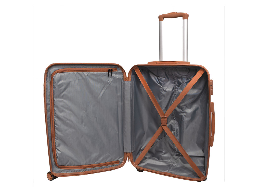 Jednoducho navrhnutý interiér s látkovou priečkou a popruhmi pomôže rýchlo a prehľadne zbaliť všetko potrebné na dlhšie cesty aj kratší pobyt mimo domova. Škrupina z odolného tvrdého plastu s hrubým povrchom a integrovaný zámok ochráni uložené veci počas prepravy. Štyri kolieska uľahčia jazdu v teréne aj manipuláciu s plne naloženou batožinou.