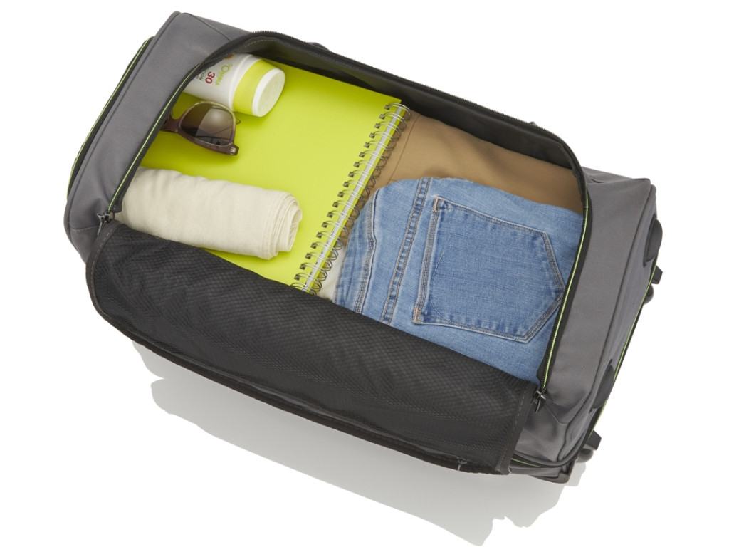 Robustnú tašku na kolieskach môžeme vďaka jej všestrannosti využívať nielen na zbalenie športových potrieb a oblečenia na tréning, športové sústredenie, ale tiež ako batožinu na predĺžený víkend či rekreáciu. Veľký úložný priestor, expandér a dve tiché kolieska, uľahčia presun vašich vecí, či už idete autom, autobusom alebo vlakom.