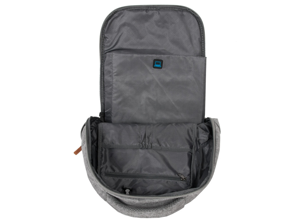 Štýlový mestský ruksak vybavený priehradkou na 15,4" notebook so vstupom cez chrbtovú časť.
