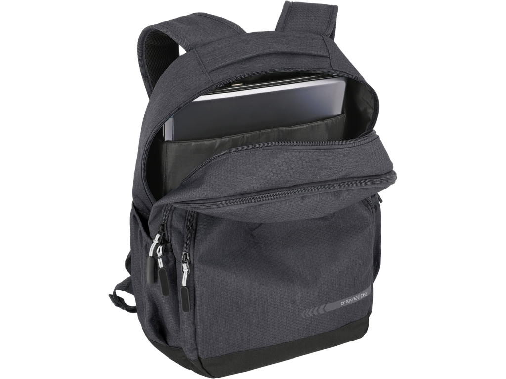 Moderný a ľahučký ruksak Travelite Kick Off Backpack L, je ideálnou voľbou na voľnočasové aktivity, do mesta, za športom, do práce, školy, aj na výlet do prírody, skrátka na prenášanie všetkého, čo potrebujete počas celého dňa. Priestorná komora je dostatočne veľká na zložky formátu A4 a polstrovaná priehradka ochráni pri prenose notebook. O prehľad vo veciach sa postará druhá komora a v prednej, zazipsovateľnej časti nájdete organizér na drobnosti, mobil, kľúče, nabíjačku, zápisník, perá, navyše aj samostané vrecko na zips. Do tajného vrecka so zipsom, umiestnenom v chrbtovom paneli, schováte mobil aj peňaženku, ktoré budete mať pri pohybe po meste vždy v bezpečí a poruke. Vonkajšie bočné vrecká sú určené na fľašku s vodou, dáždnik, alebo zloženú nákupnú tašku.