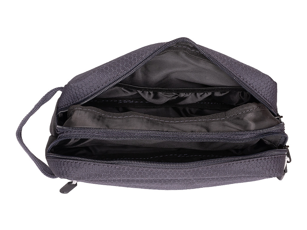Priestorná kozmetická taštička v unisex prevedení uľahčí prepravu kozmetiky, toaletných a hygienických potrieb, kdekoľvek na cestách. Vďaka samostatným priehradkám s vnútorným členením máte dostatok možností na usporiadanie obsahu. Praktické pútko umožní pohodlné nosenie na zápästí alebo zavesenie v kúpeľni.