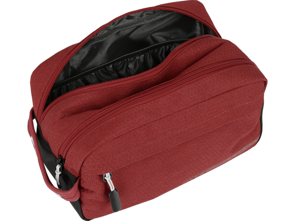Priestorná kozmetická taštička v unisex prevedení uľahčí prepravu kozmetiky, toaletných a hygienických potrieb, kdekoľvek na cestách. Vďaka samostatným priehradkám s vnútorným členením máte dostatok možností na usporiadanie obsahu. Praktické pútko umožní pohodlné nosenie na zápästí alebo zavesenie v kúpeľni.