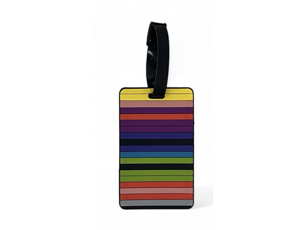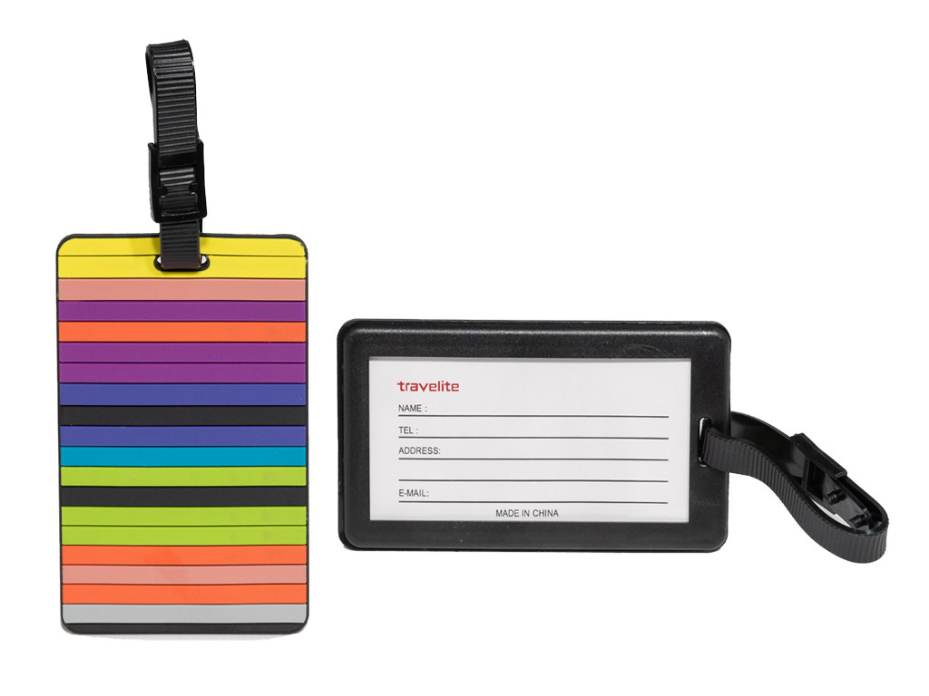 - Remienok s prackou drží menovku bezpečne na batožine.