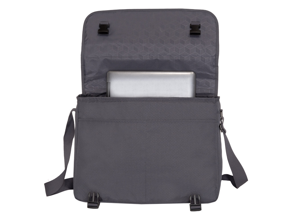 Extra ľahká taška cez rameno s predným záklopom na pracky, priehradkou na 15,6" notebook a odnímateľným popruhem, vyrobená z recyklovaného polyesteru.