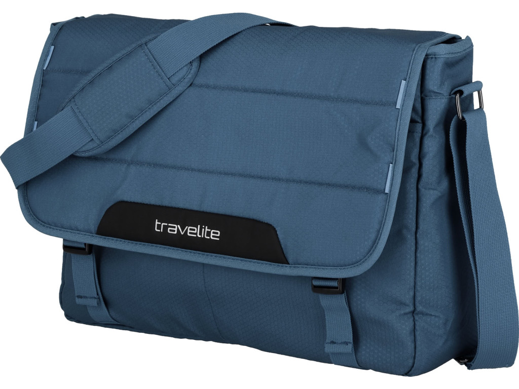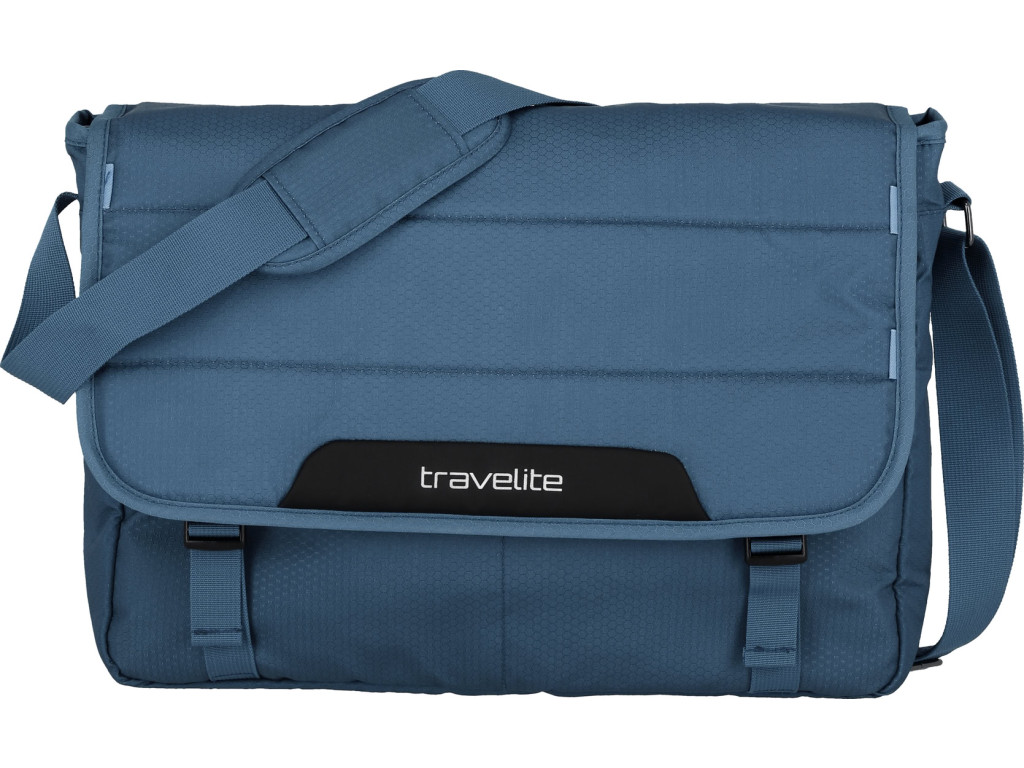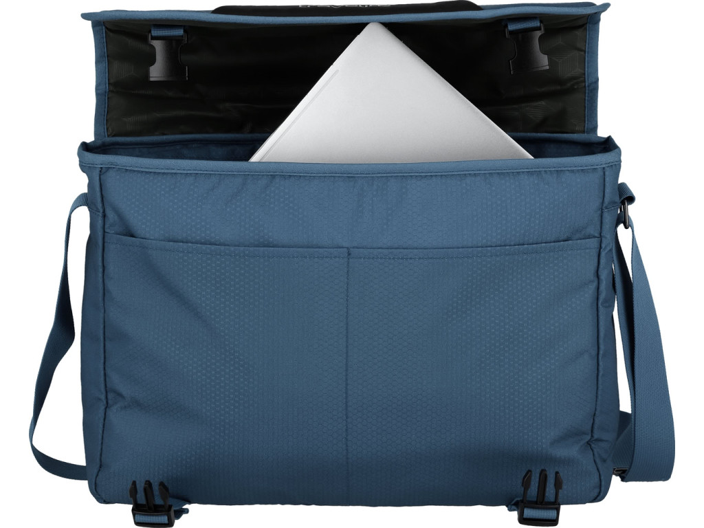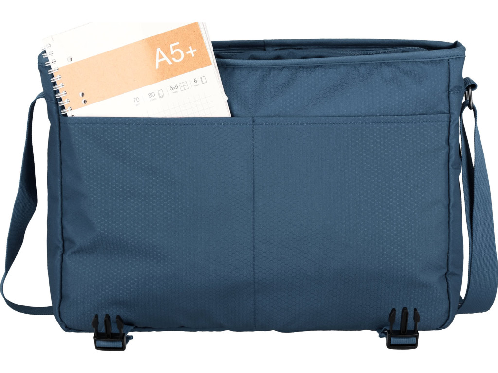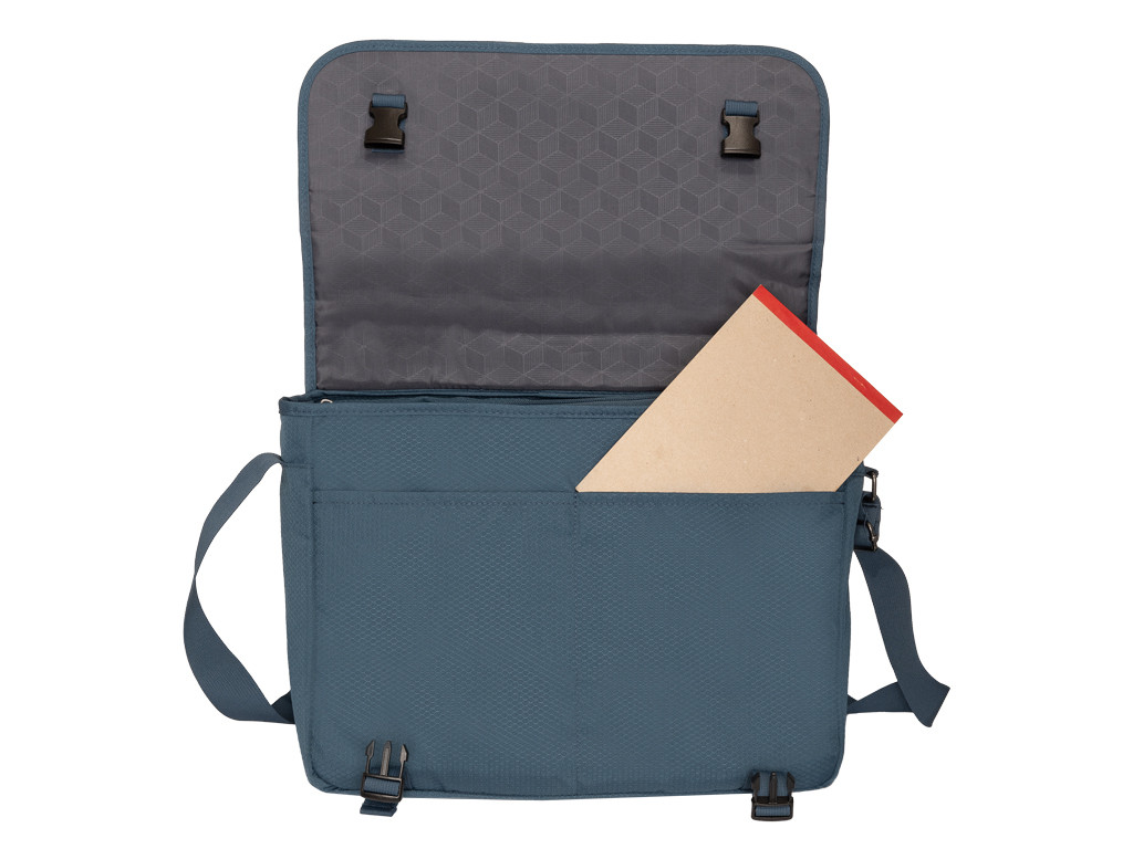 Extra ľahká taška cez rameno s predným záklopom na pracky, priehradkou na 15,6" notebook a odnímateľným popruhem, vyrobená z recyklovaného polyesteru.