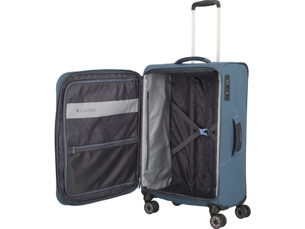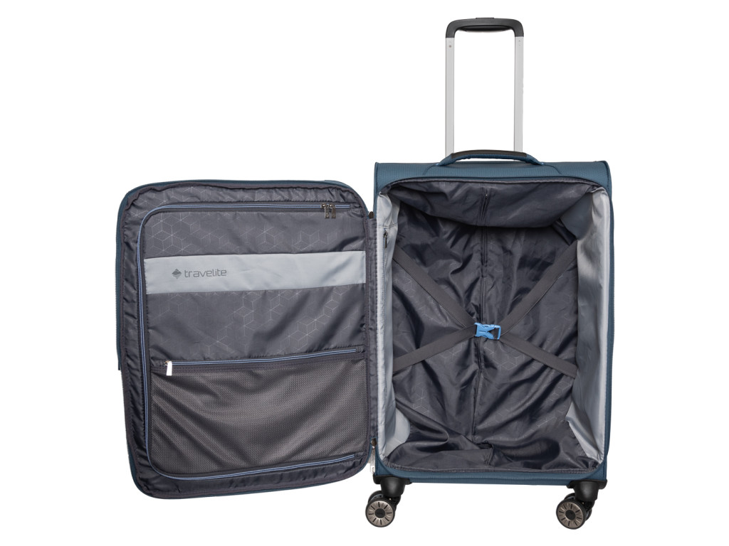 Superľahký a priestranný kufor Travelite Skaii z udržateľného materiálu sa postará o váš bezstarostný život na cestách, aj čistejšie životné prostredie. Recyklovaný polyester vyrobený z vlákien recyklovaných plastových fliaš (rPET) pomáha šetriť suroviny a znižovať množstvo plastového odpadu. Vďaka premyslenému funkčnému interiéru s fixačnými popruhmi, oddielom na košele a dvoma vreckami na zips, budete mať vždy dokonalý prehľad o tom, čo ste si kam zbalili.