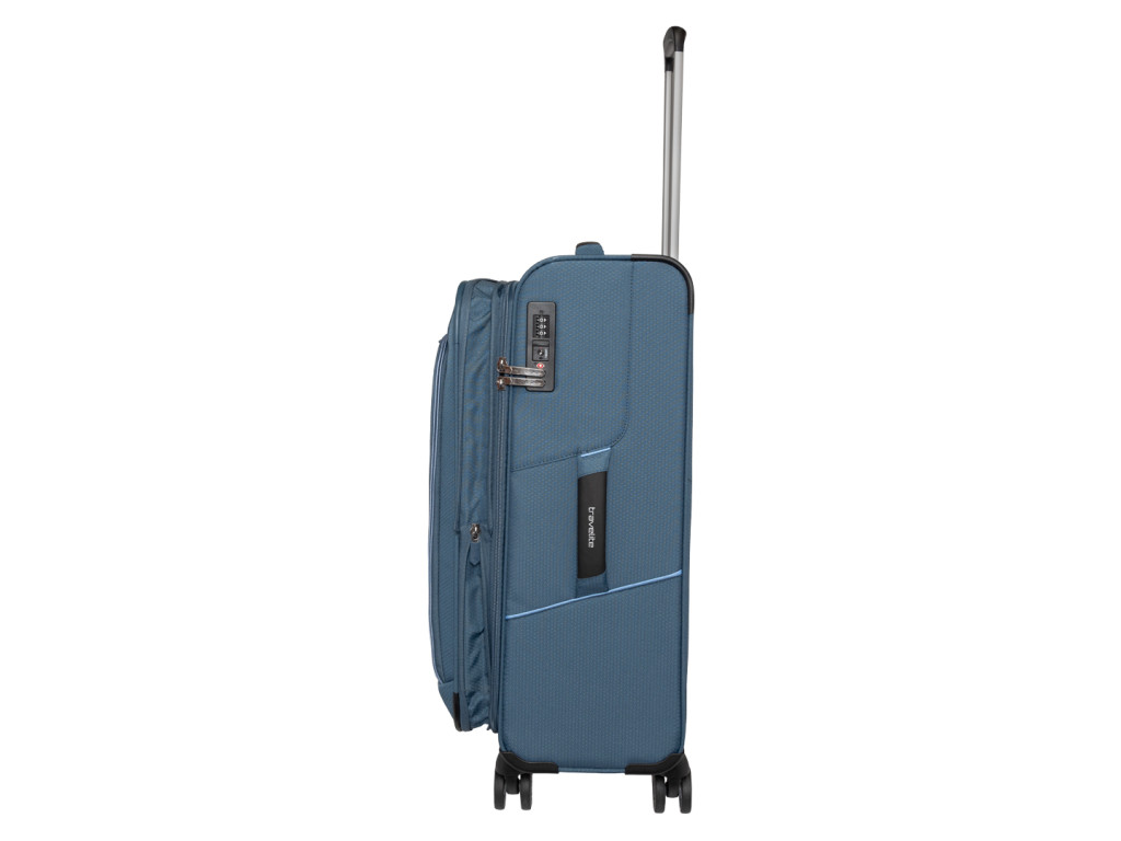 SKAII - Extra ľahký textilný kufor na štyroch kolieskach s integrovaným TSA zámkom a expandérom, vyrobený z recyklovaného polyesteru.