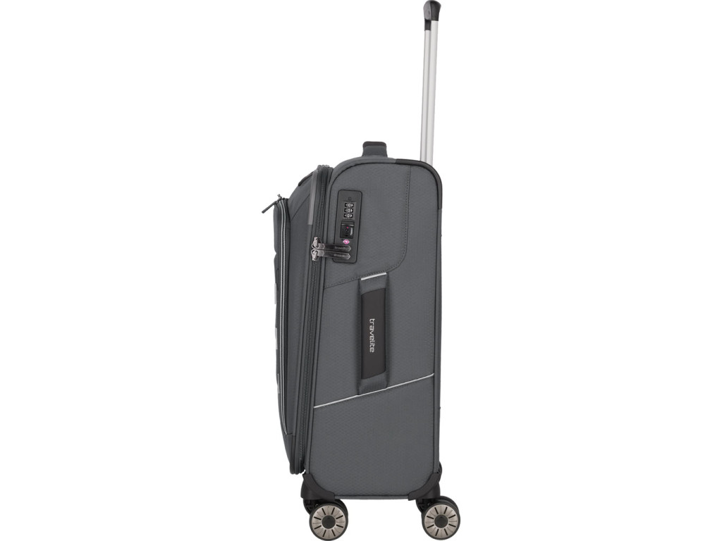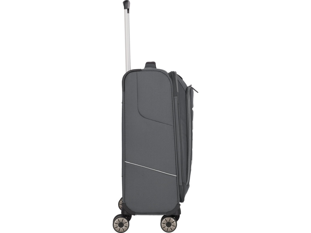Superľahký a zároveň priestorný kufor Travelite Skaii z udržiteľného materiálu, sa postará o váš bezstarostný život na cestách. Kúpou kufra z tohoto materiálu zároveň prispejete ku čistejšiemu životnému prostrediu, pretože je vyrobený z vlákien recyklovaných plastových fliaš (rPET), čo pomáha šetriť suroviny a znižovať množstvo plastového odpadu. Vďaka premyslenému funkčnému priestoru s fixačnými popruhmi, oddielom na košele a s dvoma vreckami na zips, budete mať vždy dokonalý prehľad o zbalených veciach. Predné vrecká sú šikovné na uloženie vecí, ktoré potrebujete mať poruke, či už cestovné doklady, mobil, nabíjačku, alebo čokoľvek ďalšie. TSA zámok slúži na ochranu nielen obsahu kufra, ale aj kufra samotného. Umožňuje totiž bezpečnostným pracovníkom kontrolu obsahu pri cestovaní mezi kontinentami. Kvalitné otočné kolieska, úchyt na dne, dve pevné madlá a odľahčená rukoväť zaistia pohodlnú manipuláciu. Kufor je naviac vybavený expandérom na zvýšenie objemu.