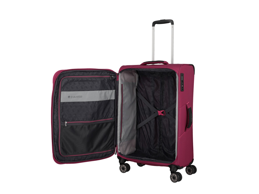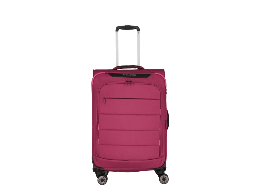 Superľahký a zároveň priestorný kufor Travelite Skaii z udržiteľného materiálu, sa postará o váš bezstarostný život na cestách. Kúpou kufra z tohoto materiálu zároveň prispejete ku čistejšiemu životnému prostrediu, pretože je vyrobený z vlákien recyklovaných plastových fliaš (rPET), čo pomáha šetriť suroviny a znižovať množstvo plastového odpadu. Vďaka premyslenému funkčnému priestoru s fixačnými popruhmi, oddielom na košele a s dvoma vreckami na zips, budete mať vždy dokonalý prehľad o zbalených veciach. Predné vrecká sú šikovné na uloženie vecí, ktoré potrebujete mať poruke, či už cestovné doklady, mobil, nabíjačku, alebo čokoľvek ďalšie. TSA zámok slúži na ochranu nielen obsahu kufra, ale aj kufra samotného. Umožňuje totiž bezpečnostným pracovníkom kontrolu obsahu pri cestovaní mezi kontinentami. Kvalitné otočné kolieska, úchyt na dne, dve pevné madlá a odľahčená rukoväť zaistia pohodlnú manipuláciu. Kufor je naviac vybavený expandérom na zvýšenie objemu.