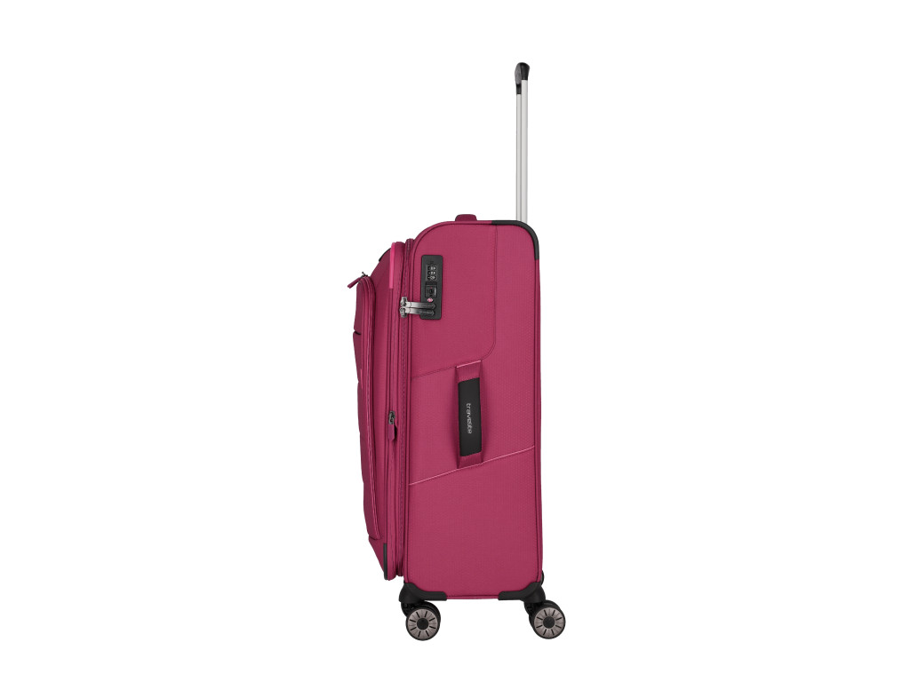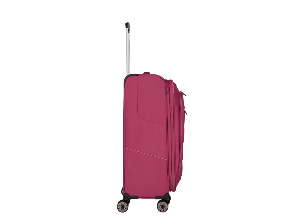 Extra ľahký textilný kufor na štyroch kolieskach, s integrovaným TSA zámkom a expandérom vyrobený z recyklovaného polyestéru.
