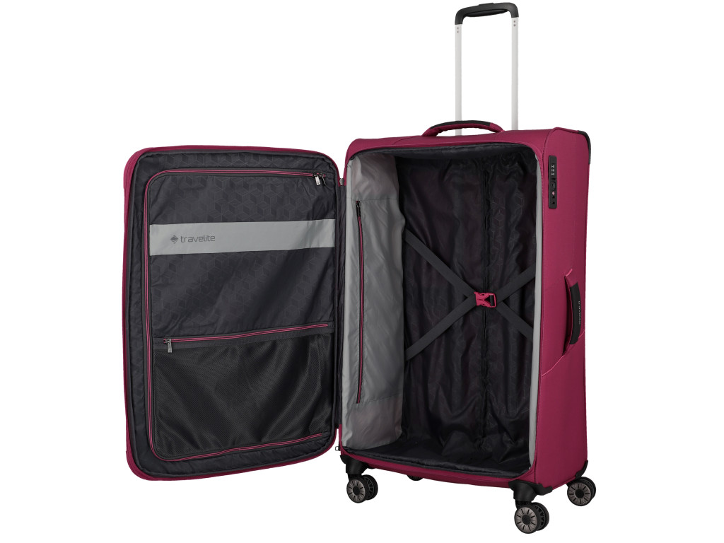 Superľahký a zároveň priestorný kufor Travelite Skaii z udržiteľného materiálu, sa postará o váš bezstarostný život na cestách. Kúpou kufra z tohoto materiálu zároveň prispejete ku čistejšiemu životnému prostrediu, pretože je vyrobený z vlákien recyklovaných plastových fliaš (rPET), čo pomáha šetriť suroviny a znižovať množstvo plastového odpadu. Vďaka premyslenému funkčnému priestoru s fixačnými popruhmi, oddielom na košele a s dvoma vreckami na zips, budete mať vždy dokonalý prehľad o zbalených veciach. Predné vrecká sú šikovné na uloženie vecí, ktoré potrebujete mať poruke, či už cestovné doklady, mobil, nabíjačku, alebo čokoľvek ďalšie. TSA zámok slúži na ochranu nielen obsahu kufra, ale aj kufra samotného. Umožňuje totiž bezpečnostným pracovníkom kontrolu obsahu pri cestovaní mezi kontinentami. Kvalitné otočné kolieska, úchyt na dne, dve pevné madlá a odľahčená rukoväť zaistia pohodlnú manipuláciu. Kufor je naviac vybavený expandérom na zvýšenie objemu.