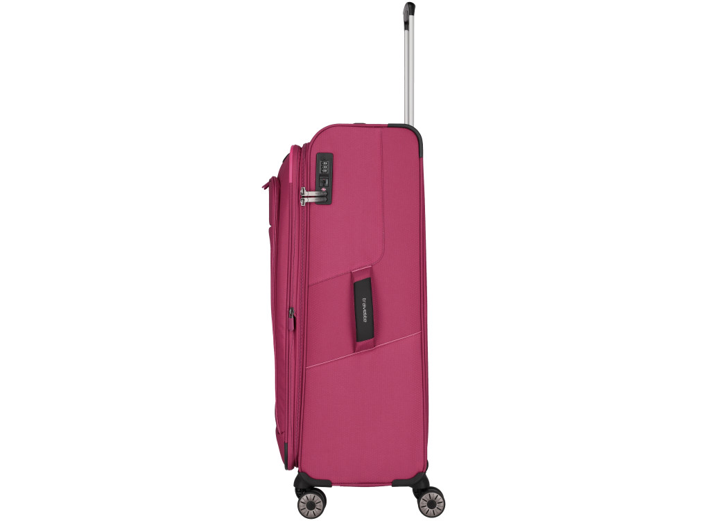 Extra ľahký textilný kufor na štyroch kolieskach, s integrovaným TSA zámkom a expandérom vyrobený z recyklovaného polyestéru.