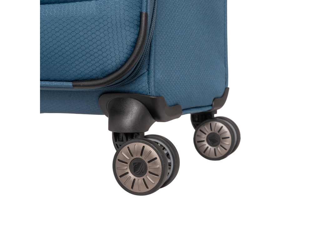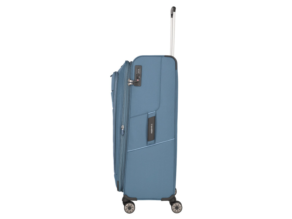 Extra ľahký textilný kufor na štyroch kolieskach, s integrovaným TSA zámkom a expandérom vyrobený z recyklovaného polyestéru.