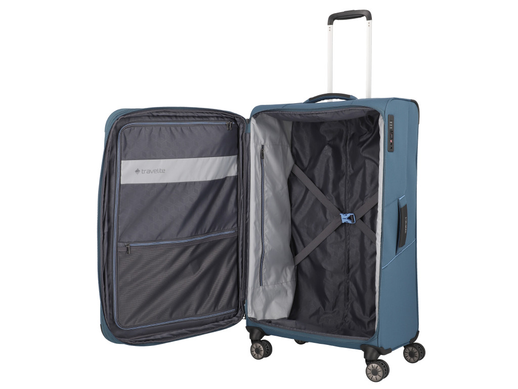 Superľahký a zároveň priestorný kufor Travelite Skaii z udržiteľného materiálu, sa postará o váš bezstarostný život na cestách. Kúpou kufra z tohoto materiálu zároveň prispejete ku čistejšiemu životnému prostrediu, pretože je vyrobený z vlákien recyklovaných plastových fliaš (rPET), čo pomáha šetriť suroviny a znižovať množstvo plastového odpadu. Vďaka premyslenému funkčnému priestoru s fixačnými popruhmi, oddielom na košele a s dvoma vreckami na zips, budete mať vždy dokonalý prehľad o zbalených veciach. Predné vrecká sú šikovné na uloženie vecí, ktoré potrebujete mať poruke, či už cestovné doklady, mobil, nabíjačku, alebo čokoľvek ďalšie. TSA zámok slúži na ochranu nielen obsahu kufra, ale aj kufra samotného. Umožňuje totiž bezpečnostným pracovníkom kontrolu obsahu pri cestovaní mezi kontinentami. Kvalitné otočné kolieska, úchyt na dne, dve pevné madlá a odľahčená rukoväť zaistia pohodlnú manipuláciu. Kufor je naviac vybavený expandérom na zvýšenie objemu.