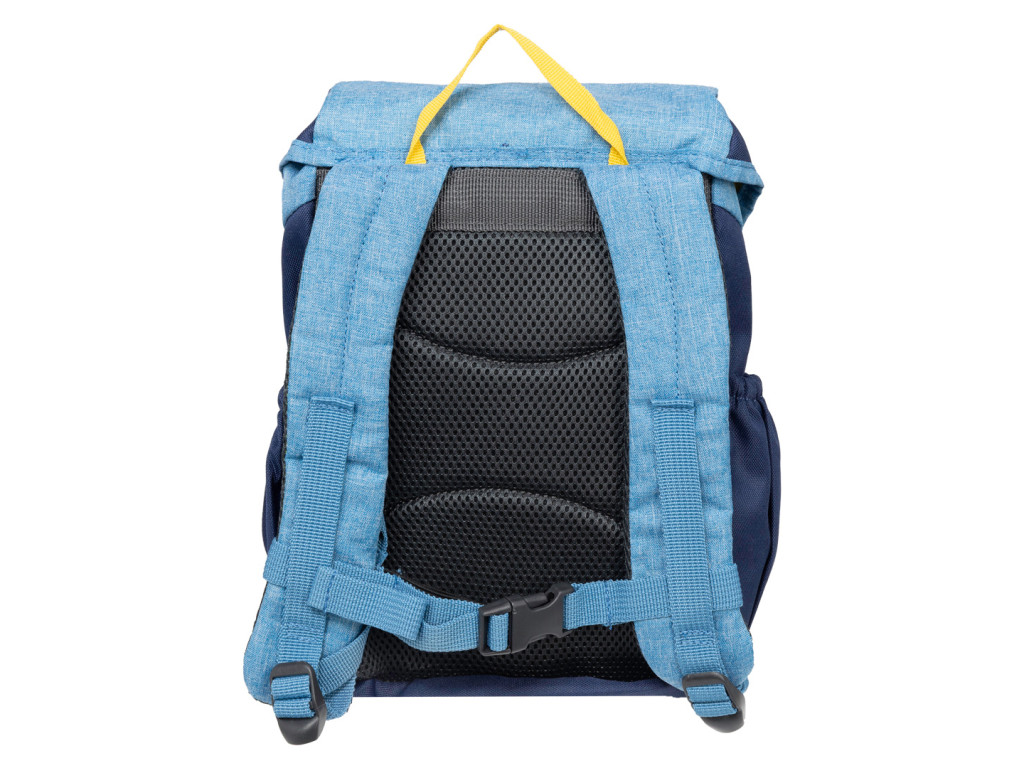 Praktický detský ruksak na každodenné použitie, aj na cesty. Hlavná komora je vybavená sťahovacou šnúrkou a prekrytá chlopňou so zapínaním na dve pracky, čo zaistí bezpečné uloženie vašich vecí. Na bokoch ruksaku sa nachádzajú dve vrecká, ktoré sú ideálne na uschovanie fľaše s vodou, dáždnika alebo iných drobností, ktoré chcete mať po ruke. Pre ľahké prenášanie je na vrchu ruksaku umiestnené pevné ucho. Nezabúdame ani na pohodlie – ruksak je vybavený polstrovanou zadnou-chrbtovou časťou a nastaviteľnými ramennými popruhmi, ktoré zaistia maximálny komfort pri nosení. Ruksak je vyrobený z odolného materiálu, utkaného z dvoch rôzne farebných vlákien. Či už sa vaše deti vyberú do školy alebo na výlety, tento ruksak sa stane ich nevyhnutným pomocníkom.